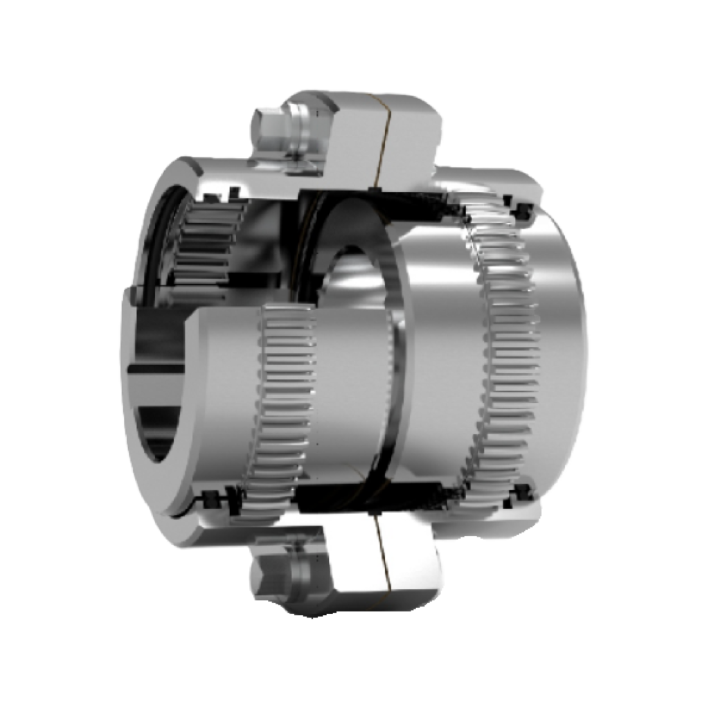 Devido as engrenagens, estes acoplamentos sao indicados para a transmissão de grandes torques e acomodam